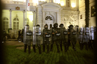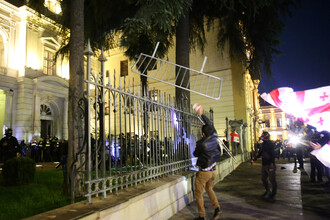 Во время столкновения с полицией часть протестующих попыталась проникнуть на территорию президентского дворца. В ответ силовики пустили перцовый газ. Есть пострадавшие.