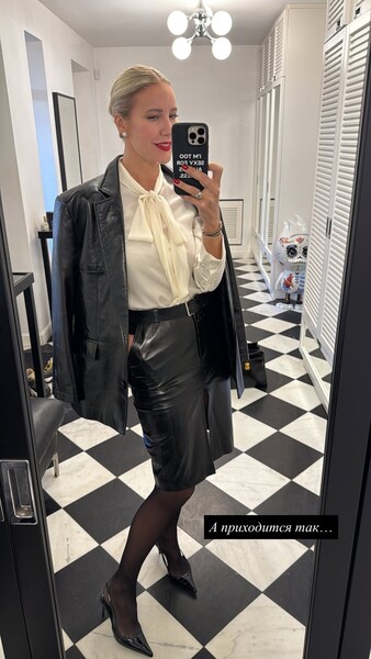 Экс-ведущая «Ревизорро» вышла на публику в кожаной юбке с разрезом