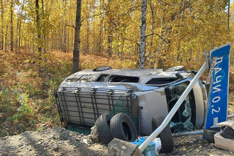 В Бурятии рейсовый автобус с пассажирами съехал с дороги и опрокинулся