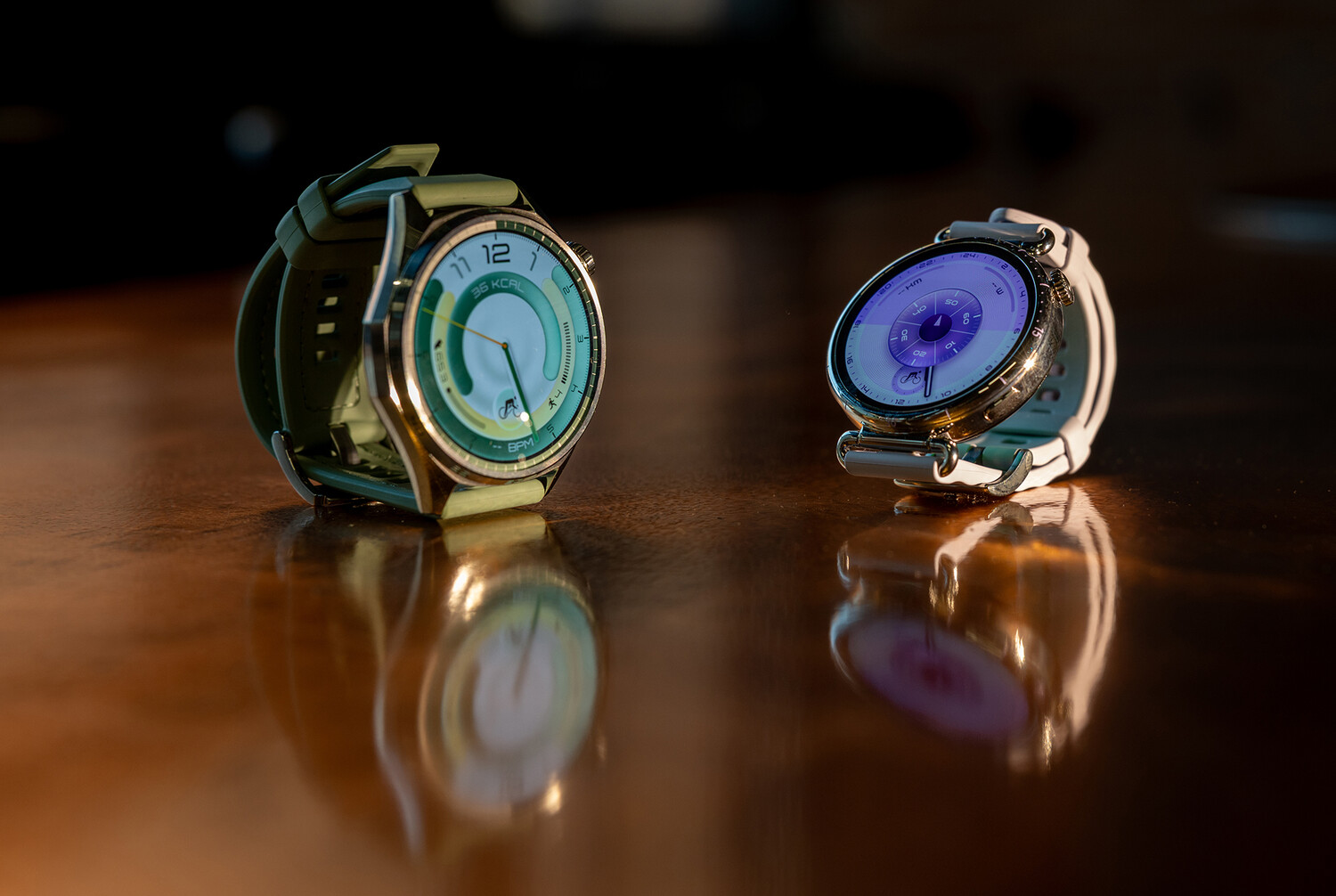 Размеры дисплеев двух последних моделей увеличились по сравнению с GT 5 Pro совсем немного, но эффект от этого ощущается — кажется, на экране стало просторнее, управление жестами четче и в целом взаимодействие с интерфейсом выглядит еще более интуитивным и приятным. Экран стал явно чувствительнее — часы фиксируют, что вы на них смотрите, стабильнее и быстрее, при этом алгоритмы блокировки экрана работают четко, ошибочных включений экрана почти нет, а сенсорная матрица даже при прикосновении мокрыми пальцами реагирует предсказуемо.