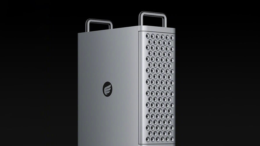 Устройство получило решетчатую фронтальную панель, эргономичную ручку и опоры в нижней части корпуса, что делает его визуально схожим с рабочей станцией Apple.