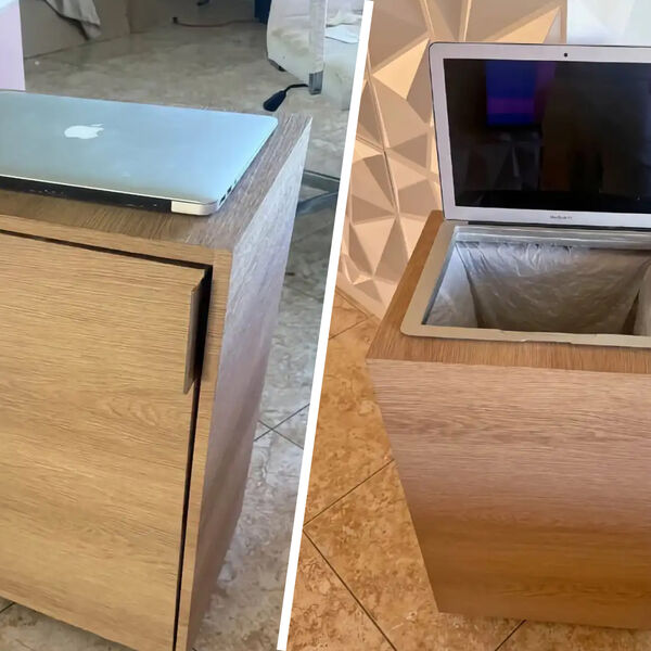 По словам создателя проекта Брэндона Нильсена из Скоттсдейла (Аризона), такая конструкция позволяет эстетически интегрировать мусорное ведро в интерьер жилых помещений. При закрытой крышке устройство визуально воспринимается как ноутбук, установленный на деревянной подставке.