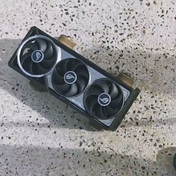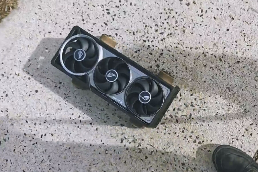 Энтузиаст использовал не видеокарту целиком, а его массивный охлаждающий модуль с тремя кулерами. В опубликованном ролике конструкция используется в качестве мини-скейта. Судя по габаритам и форме, основой действительно послужил штатный кулер для флагманской RTX 5080 Astral.