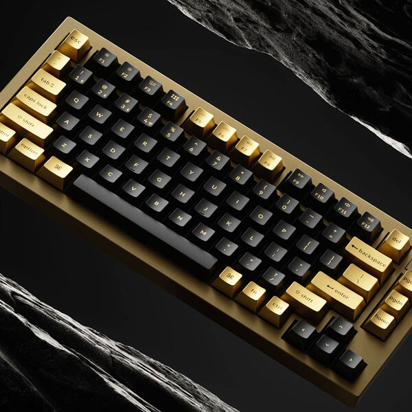 Комплект поставки включает два набора клавишных колпачков: черные с медными символами и медные с черной гравировкой. Регулятор громкости и другие элементы дизайна также выполнены в медной стилистике, что подчеркивает премиальный характер устройства.