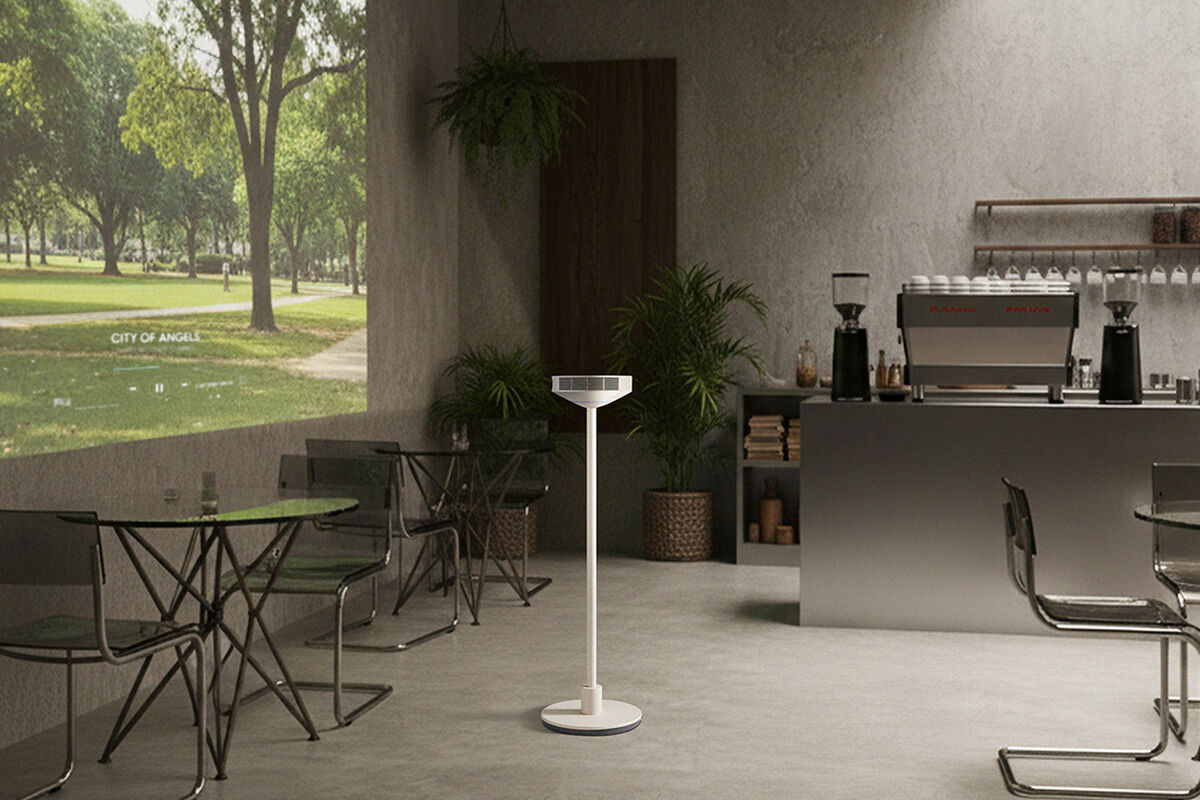 MoodMate выполнен в вертикальном корпусе на напольной стойке и поддерживает проекцию изображения в разрешении Full HD диагональю до 120 дюймов. Картинка отображается в соотношении 1,2:1 при яркости 300 люмен. Заявлены угол проекции до 105 градусов, динамическая контрастность 150 000:1, поддержка HDR, операционная система webOS, наличие разъемов HDMI и USB.